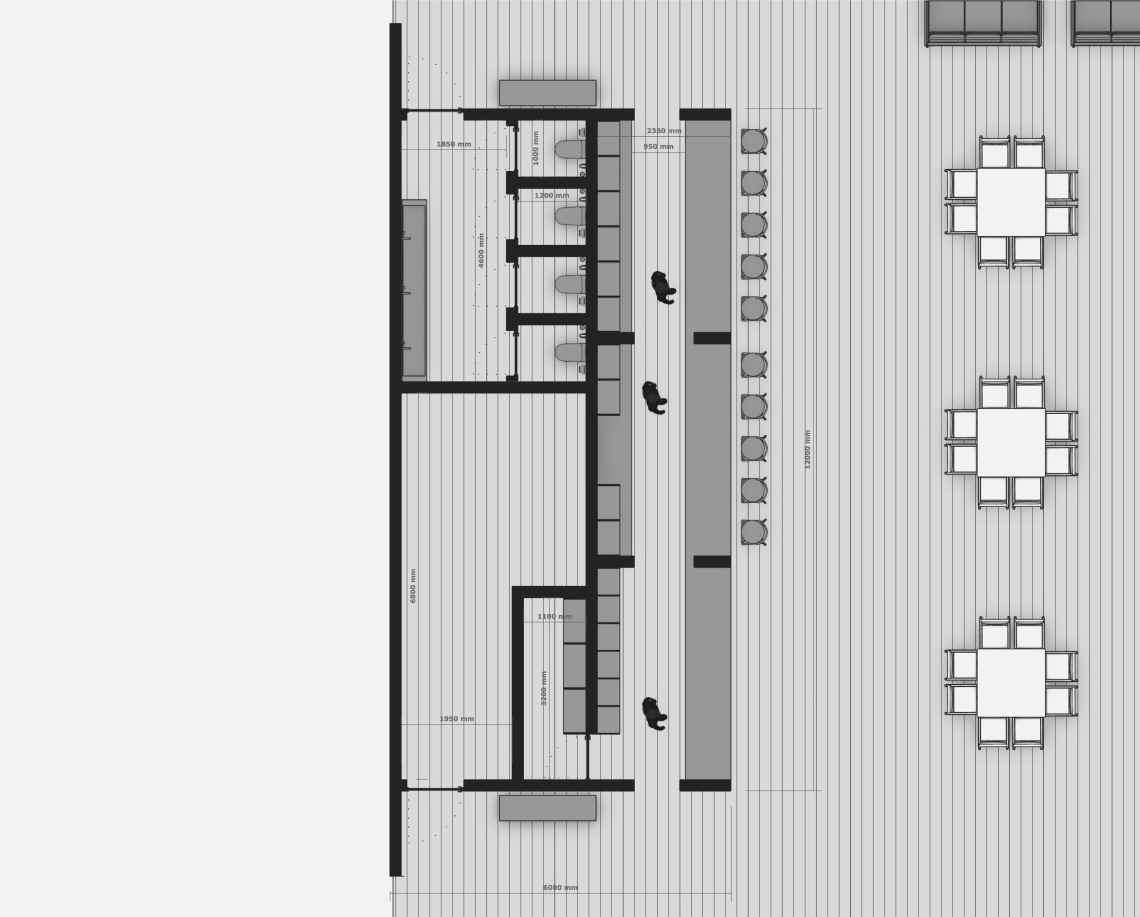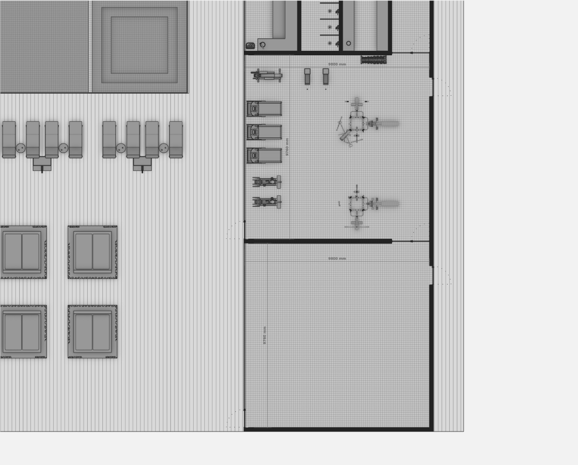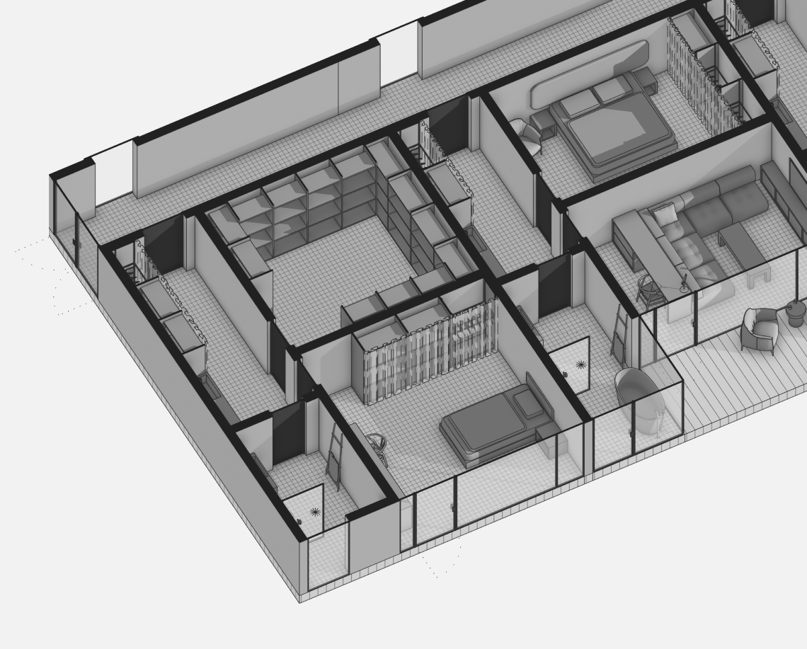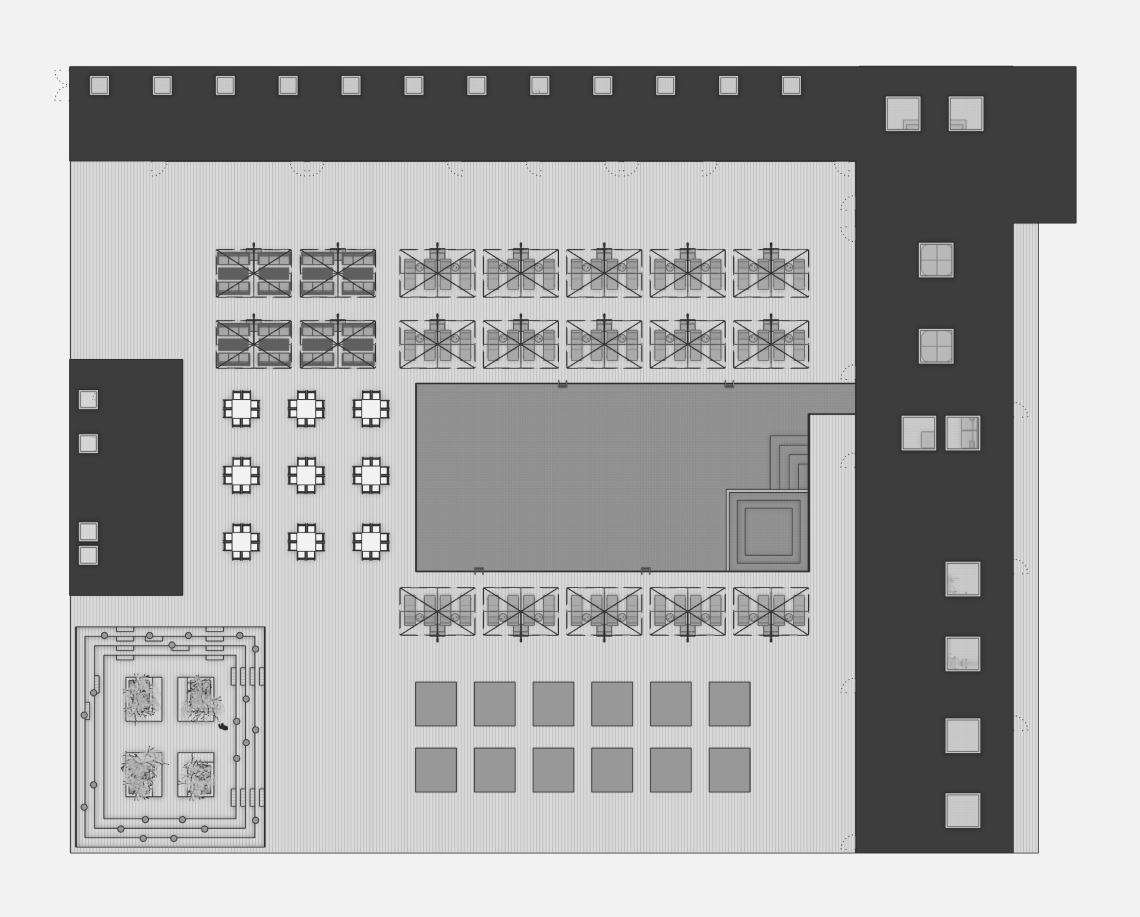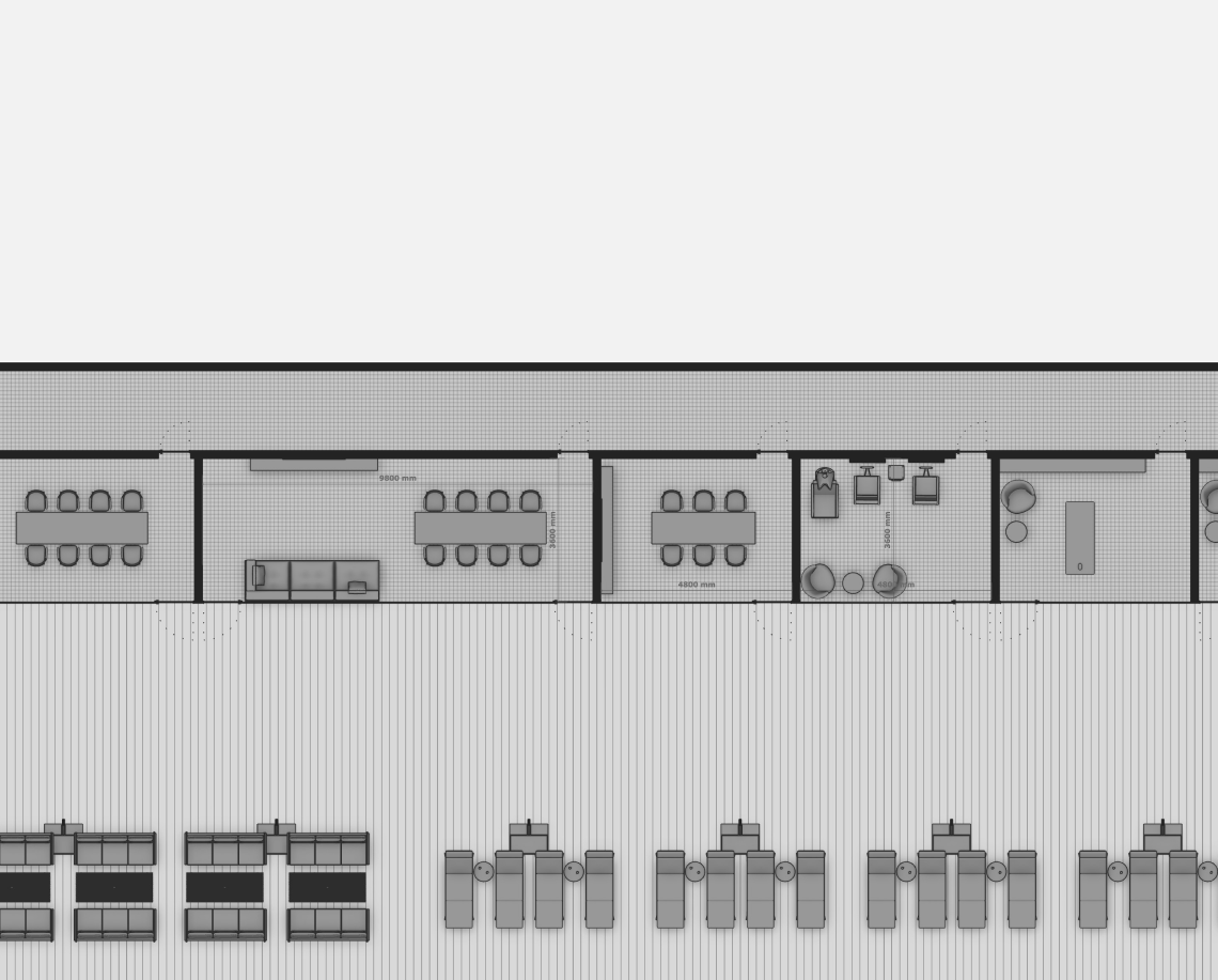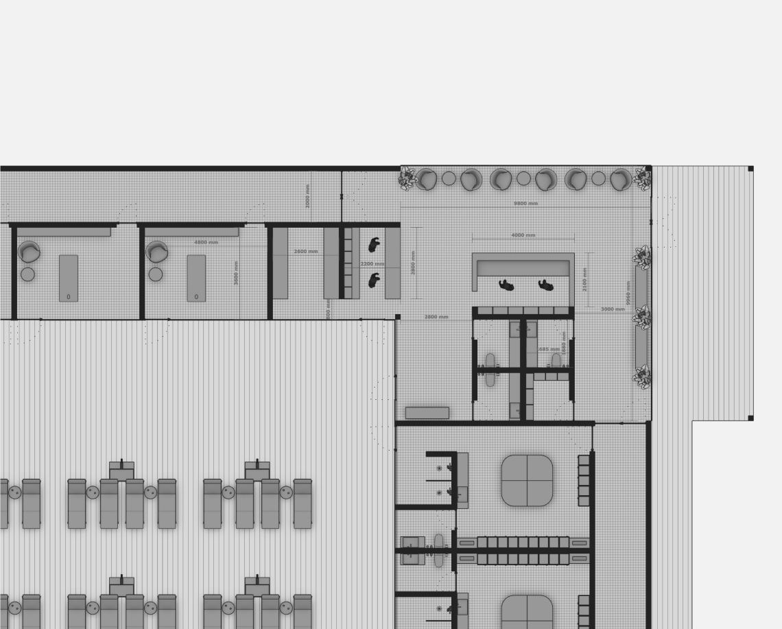 Вдоль северной границы участка расположен бутик-отель длиной 170 метров, состоящий из рядных апартаментов с индивидуальными террасами и панорамным остеклением.