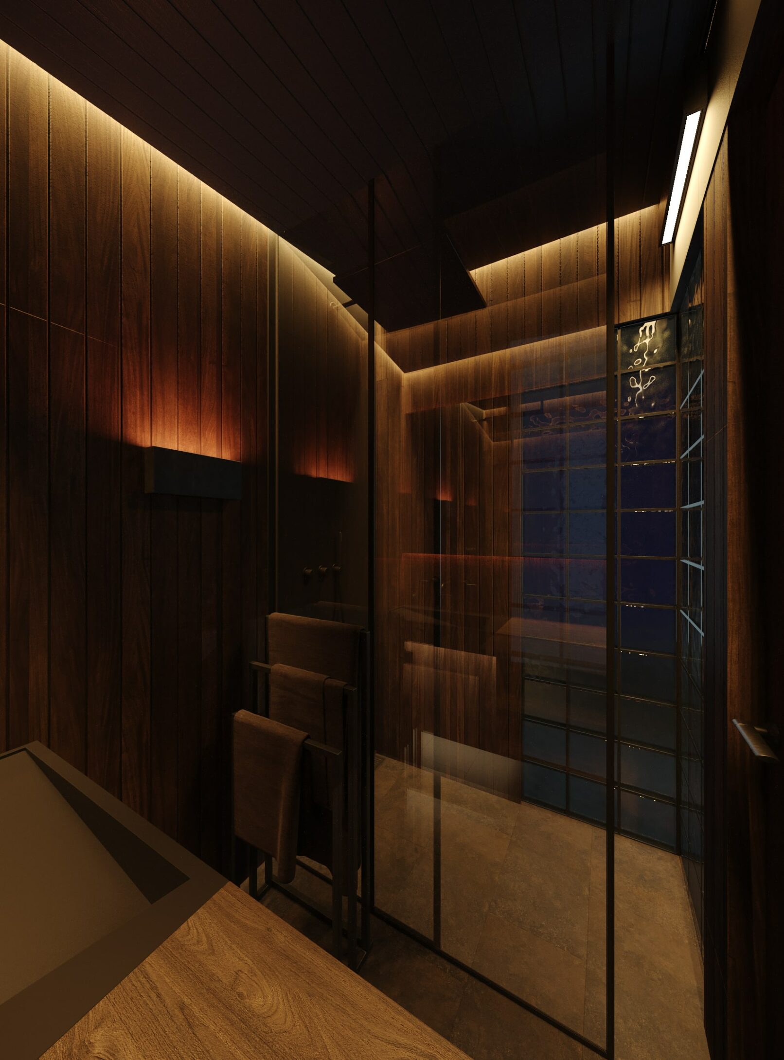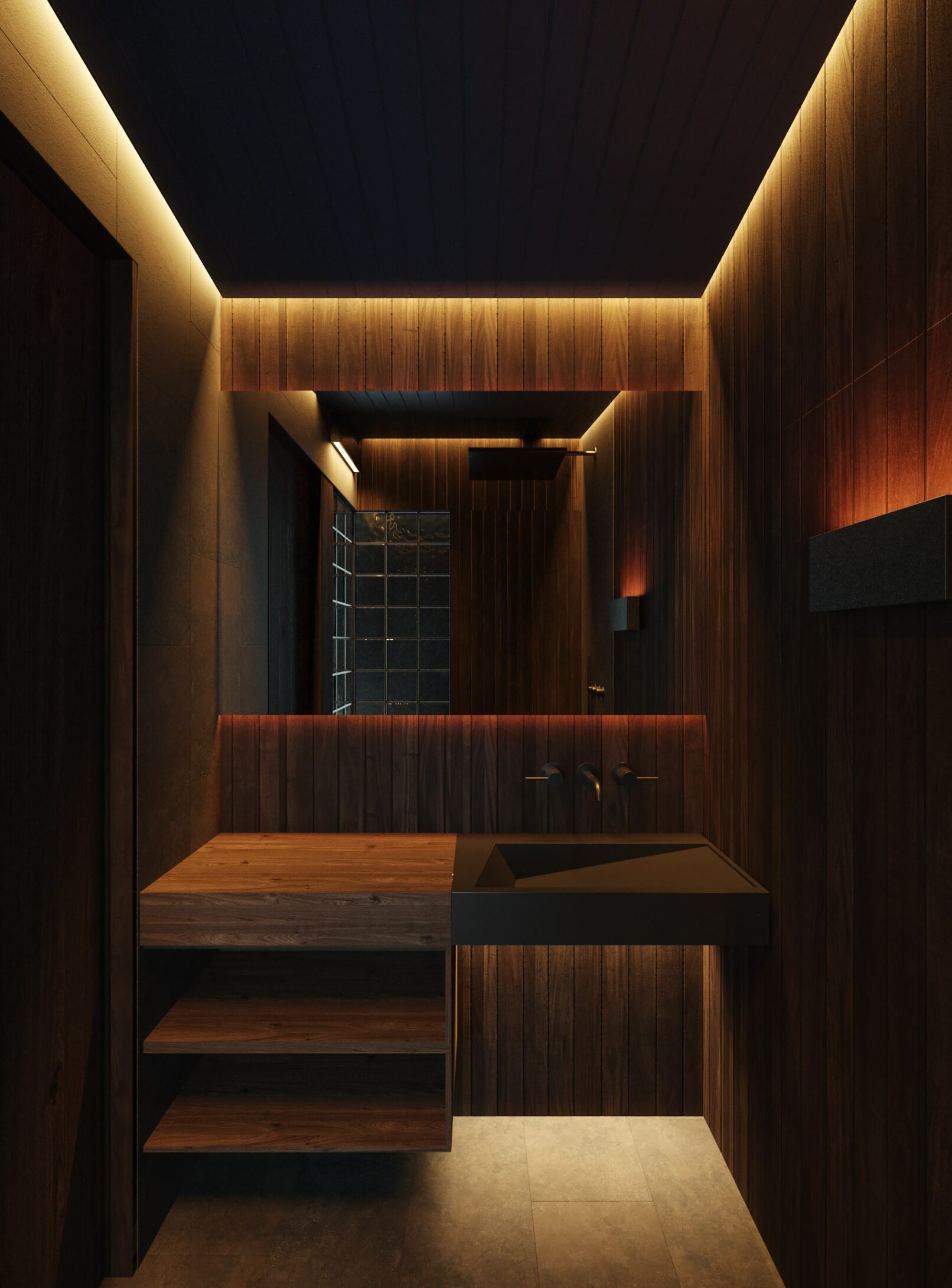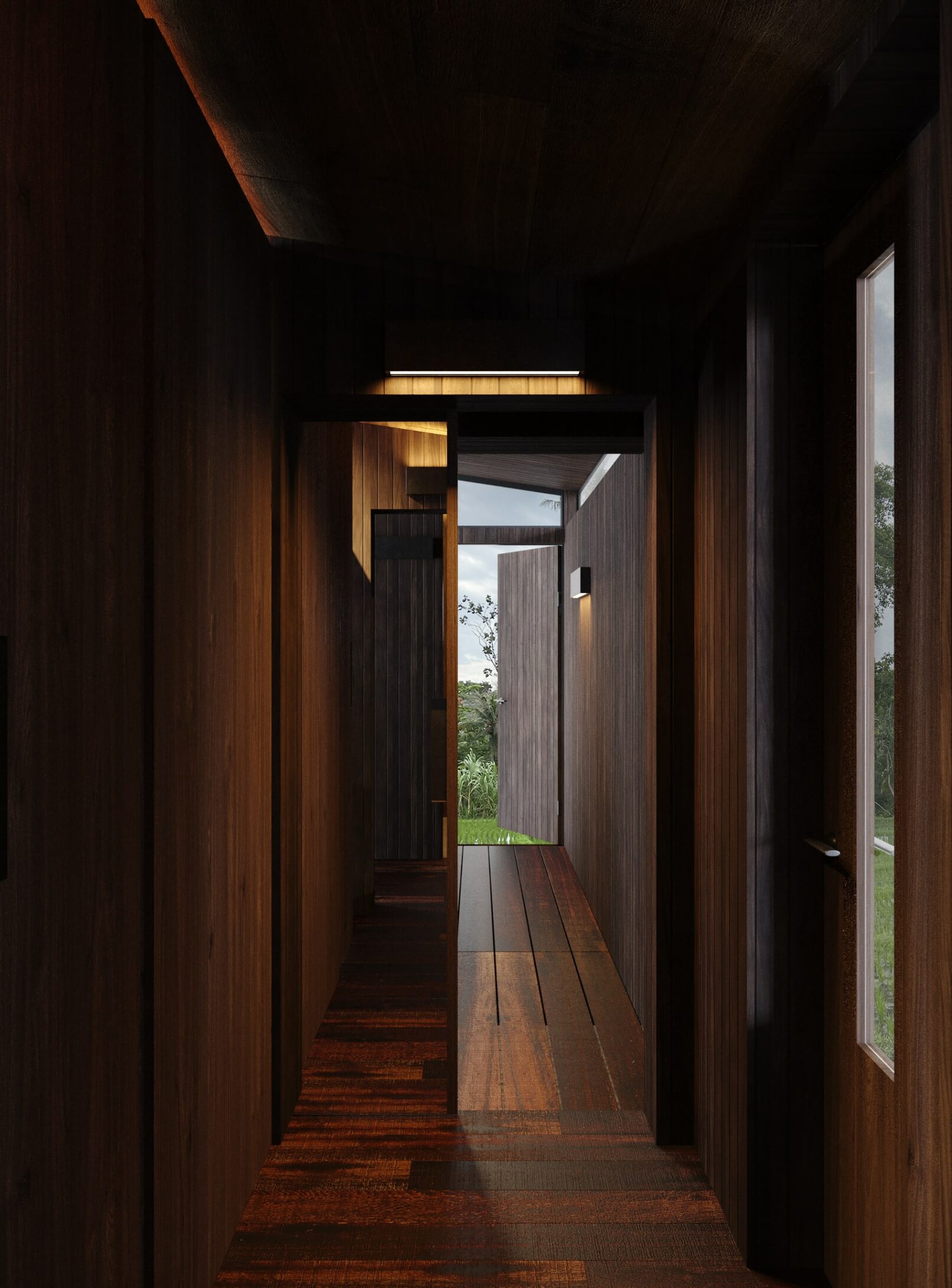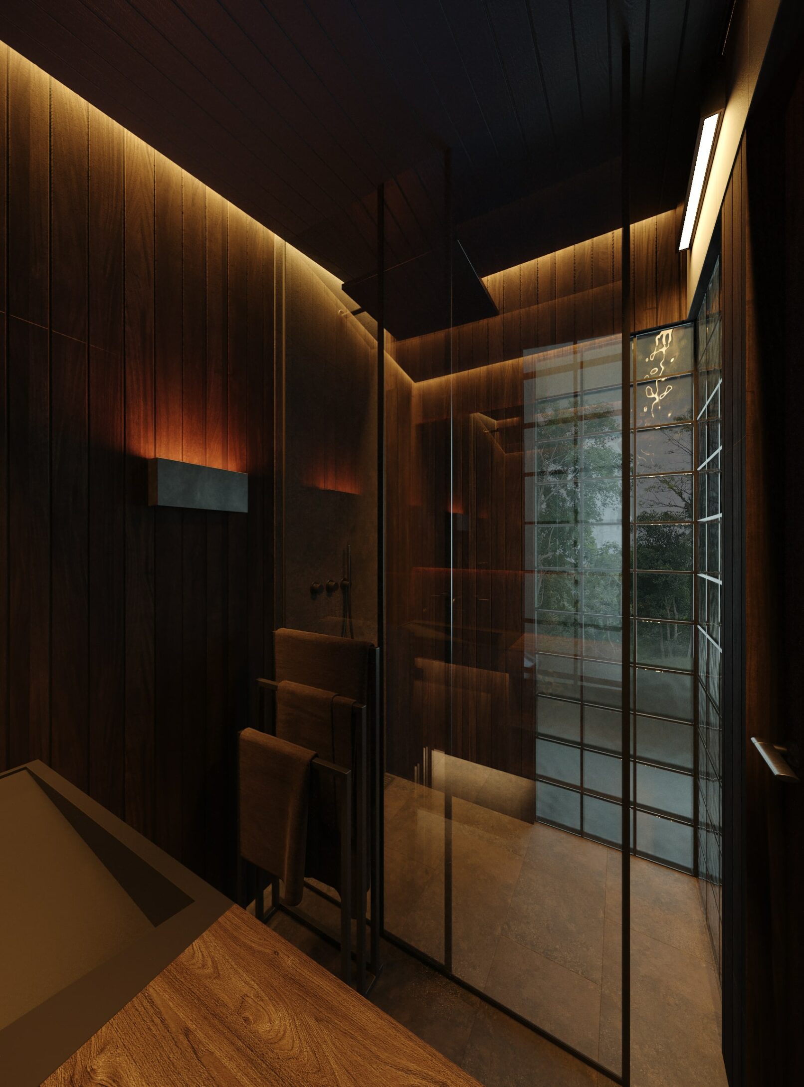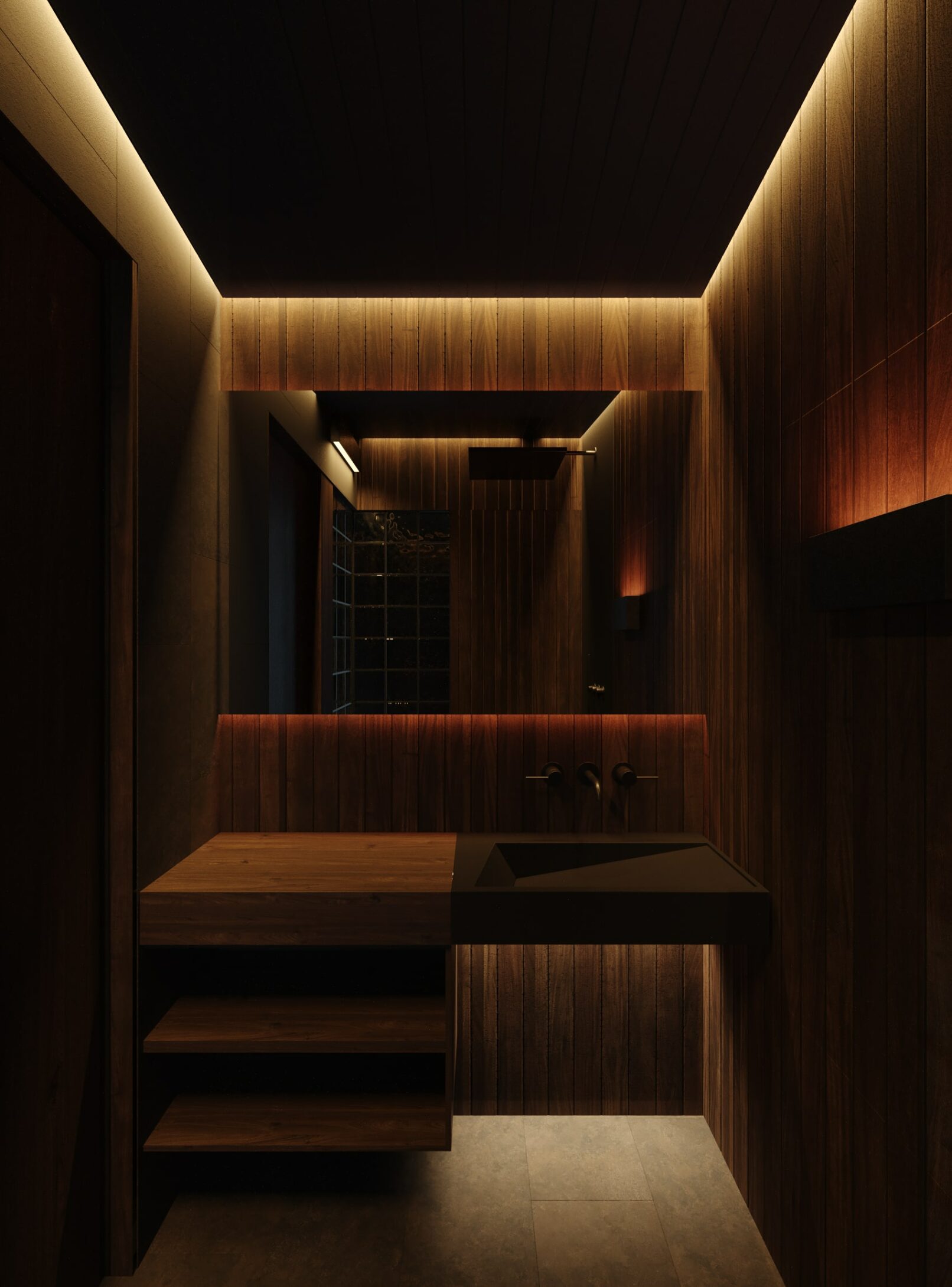 Нижний уровень — это отдельное пространство для восстановления: парная и купель с холодной водой, окружённые плотной зеленью. Натуральные материалы, естественная вентиляция, тень и продуманная ориентация дома делают его устойчивым к жаркому влажному климату, создавая комфортное и тихое убежище посреди природы.