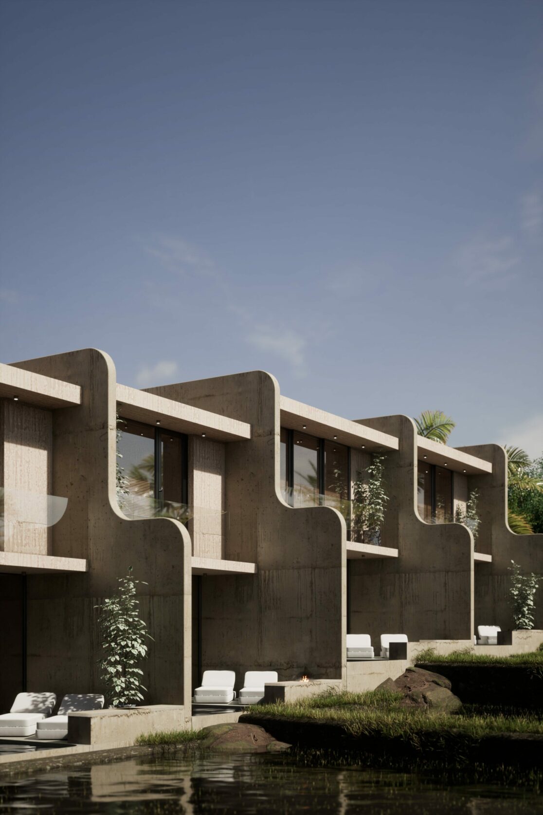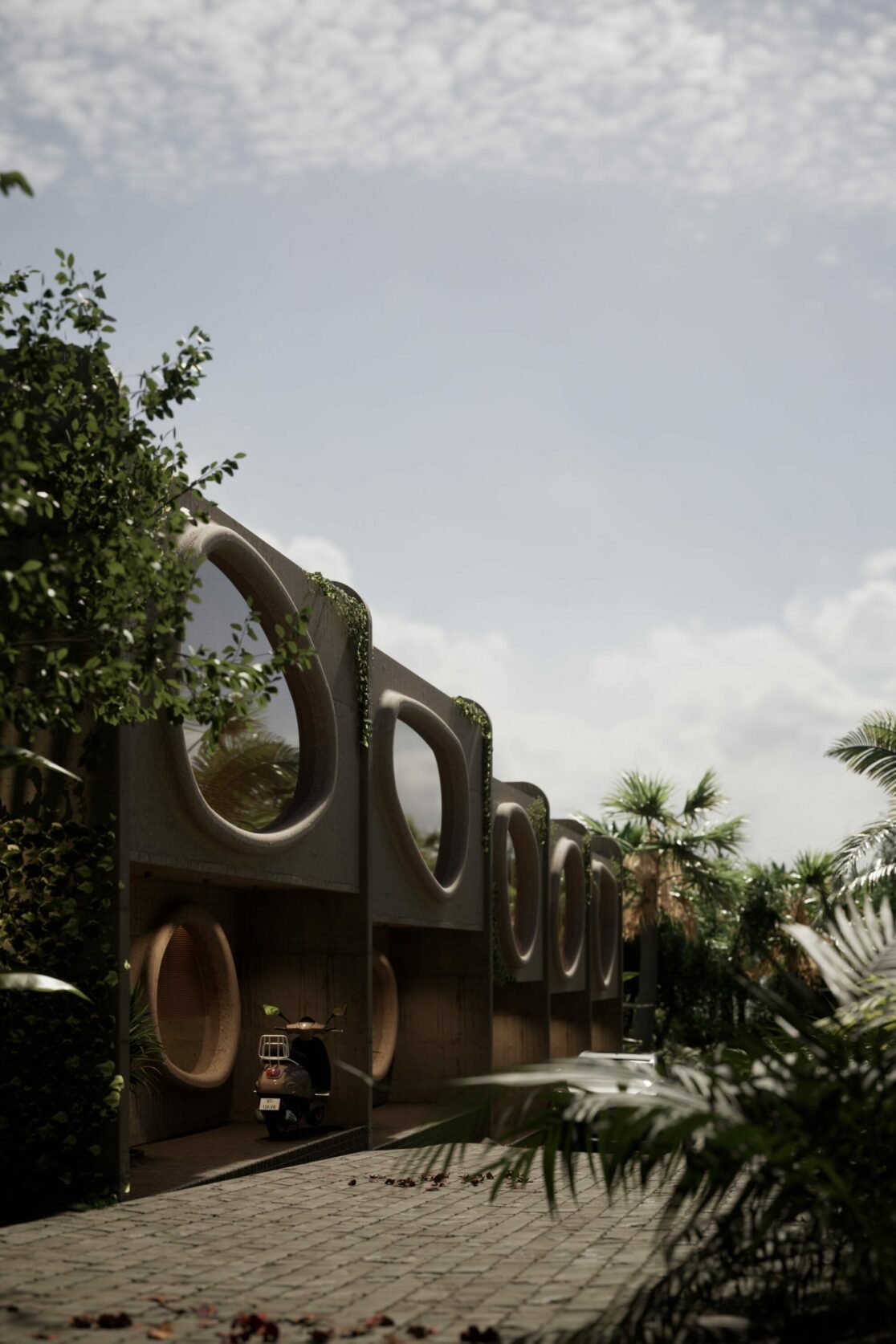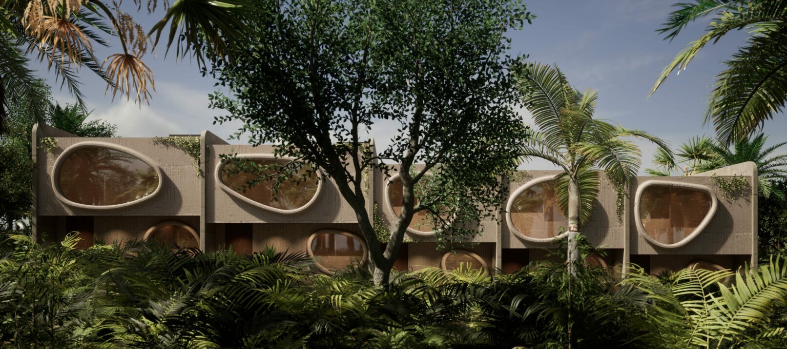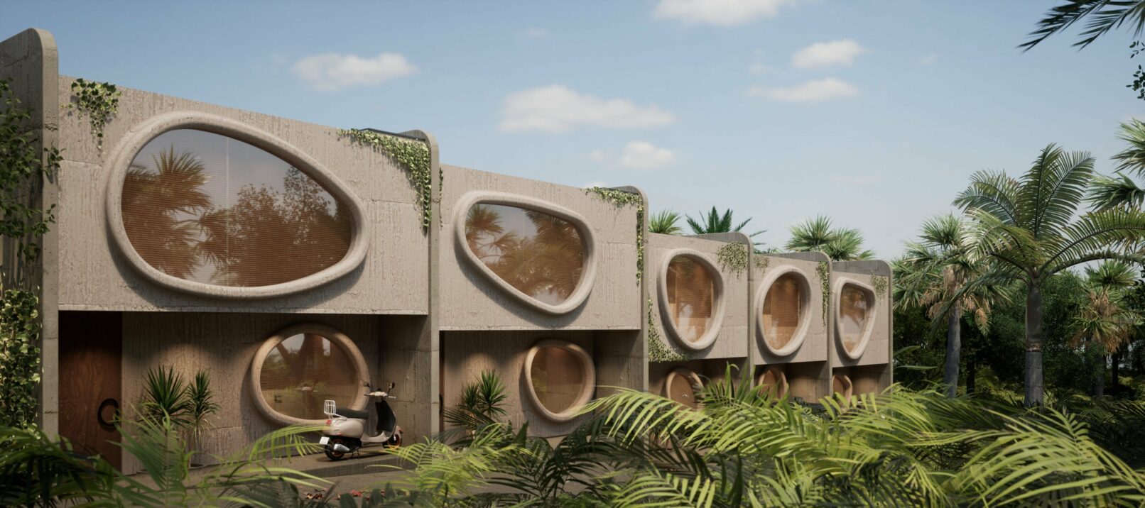 Проект Bubbles — это архитектурный комплекс таунхаусов, расположенный в тропическом контексте. Основная идея решения — выразительная бетонная пластика фасадов с органичными формами окон и глубоким взаимодействием с природной средой.