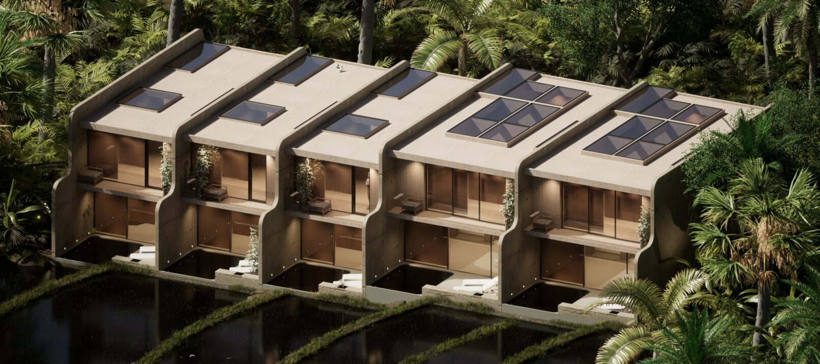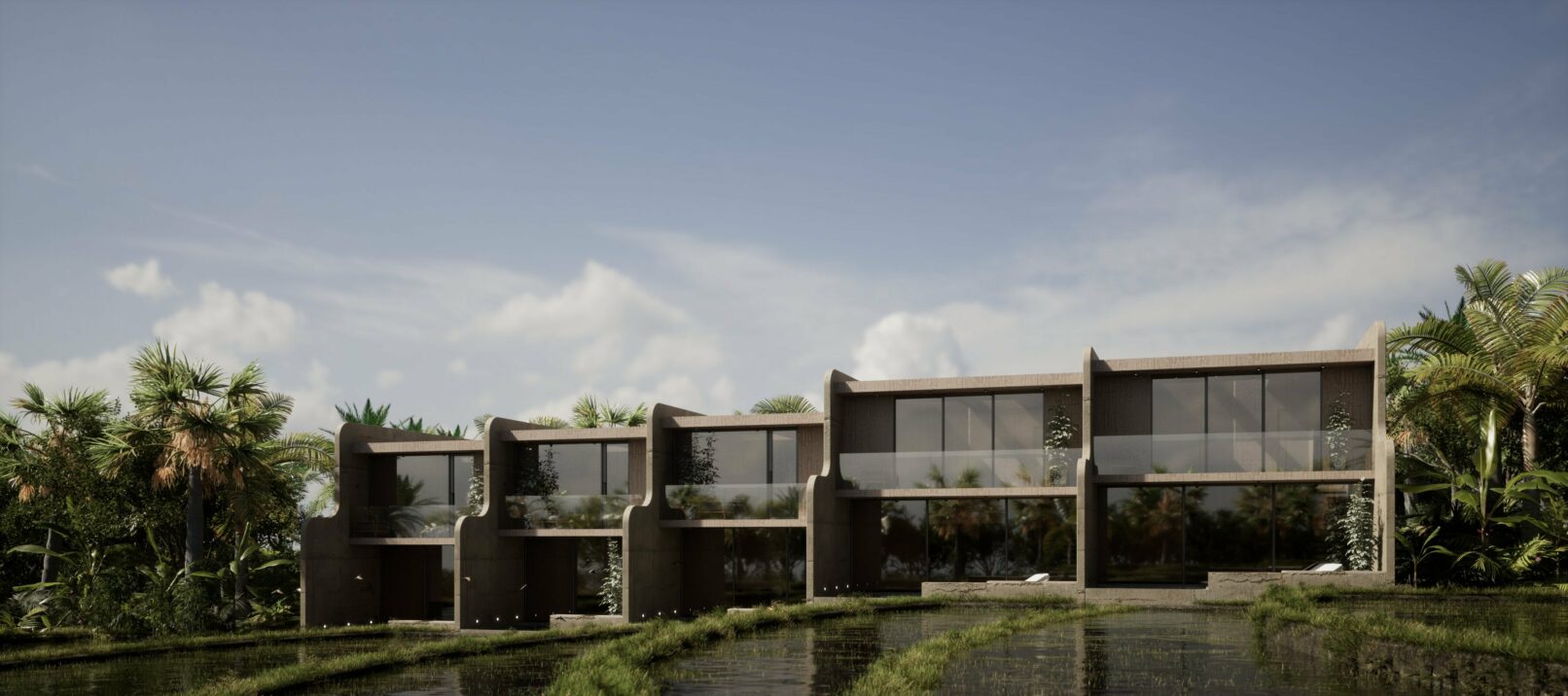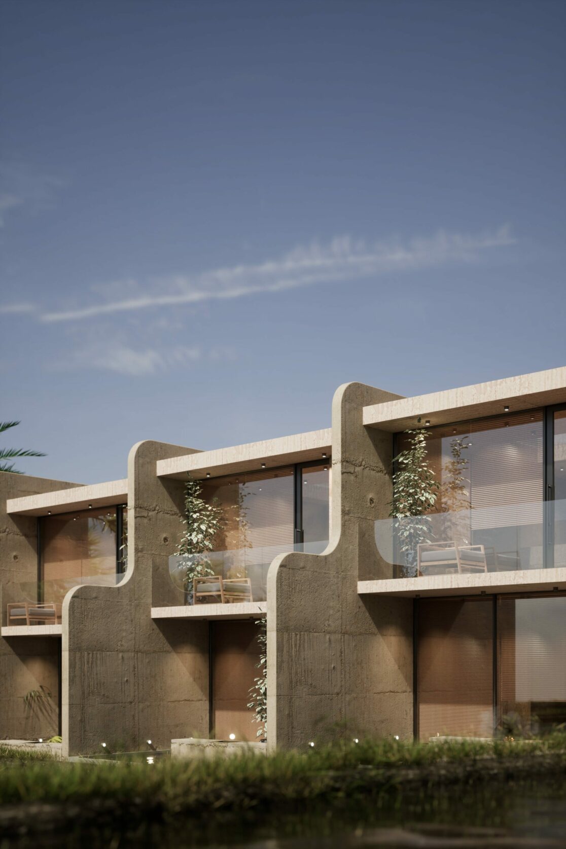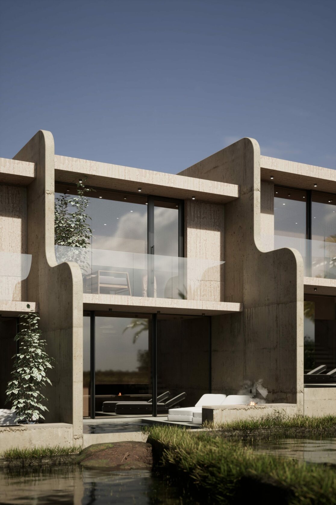 Проект Bubbles — это архитектурный комплекс таунхаусов, расположенный в тропическом контексте. Основная идея решения — выразительная бетонная пластика фасадов с органичными формами окон и глубоким взаимодействием с природной средой.