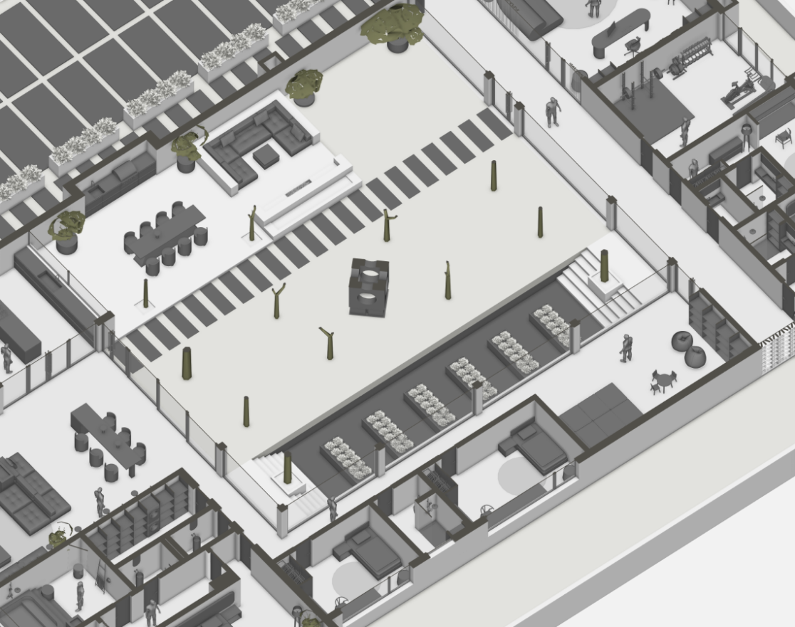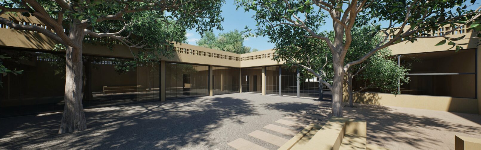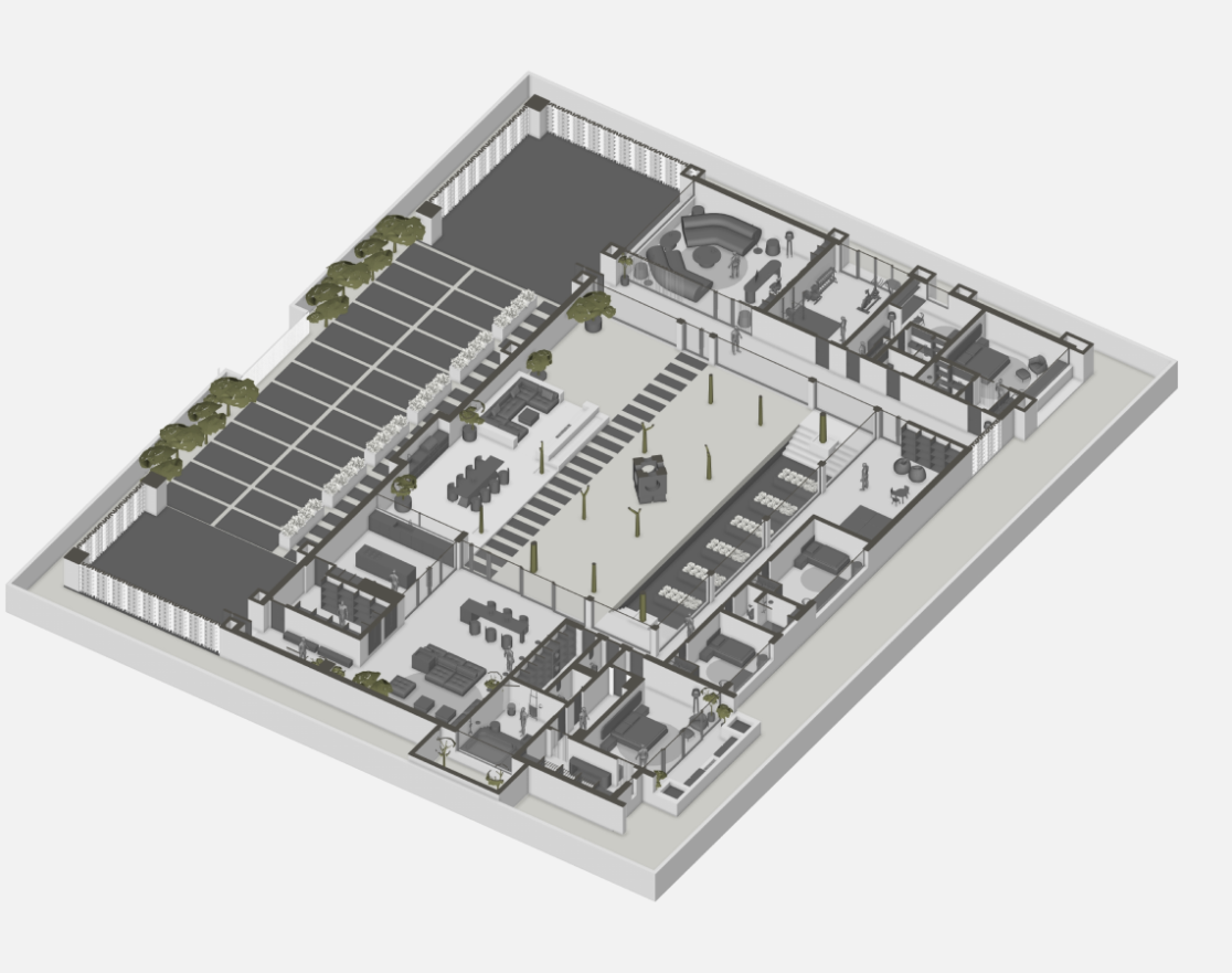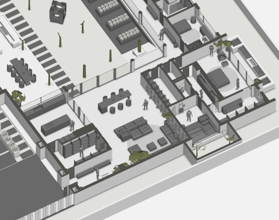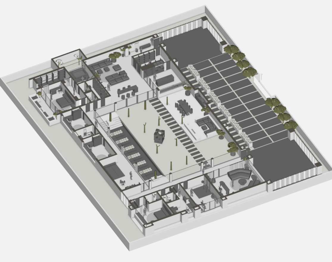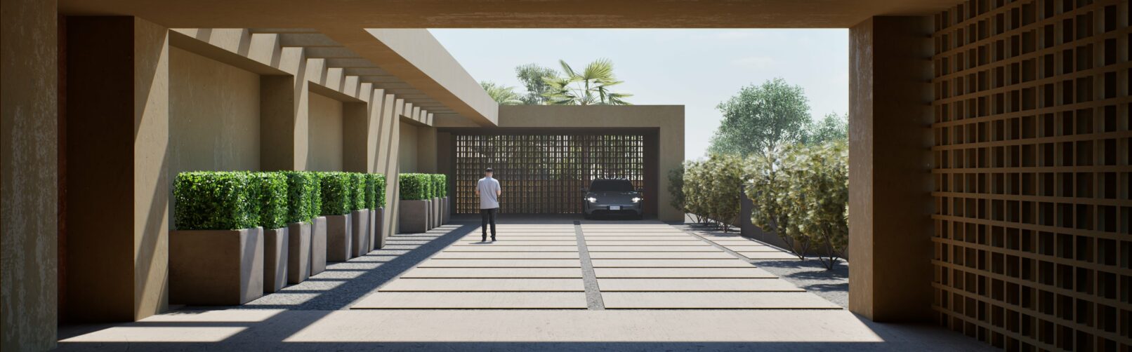 Эта частная вилла в ОАЭ спроектирована как уединённое убежище, органично встроенное в природный и климатический контекст региона. Архитектура сочетает лаконичную геометрию, тёплую брутальность материала и продуманные климатические решения. Основной акцент сделан на приватность, внутреннюю тишину и взаимодействие с зелёной средой. Вилла словно прячется за стенами и зеленью, открываясь только внутрь — в сторону просторного внутреннего двора, который становится центром жизни. Простые формы, тени от пергол, рассеянный свет и растительность создают ощущение камерного, но щедрого пространства, где архитектура работает не напоказ, а на качество повседневной жизни.