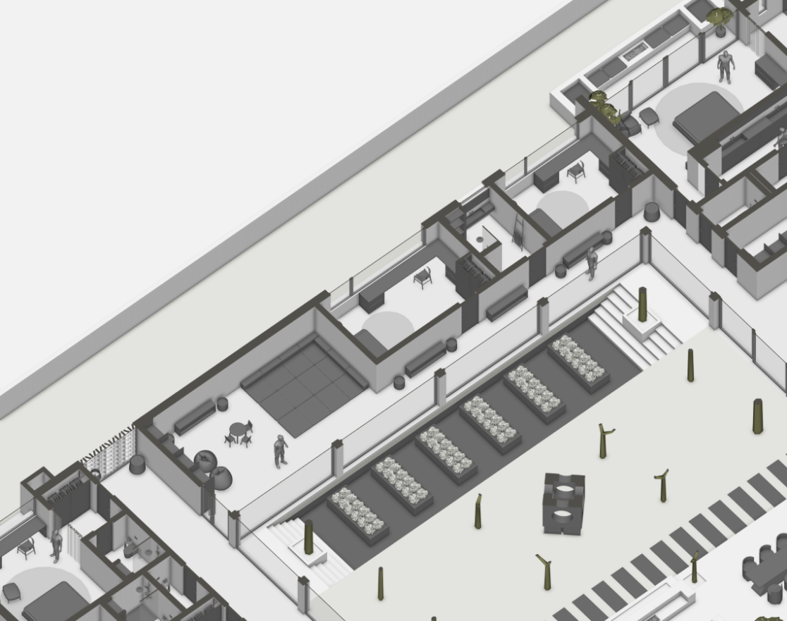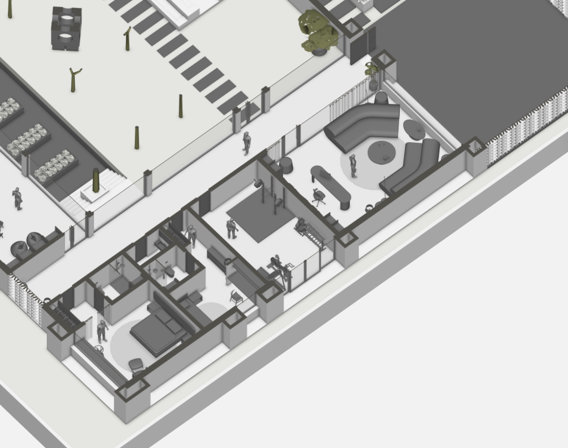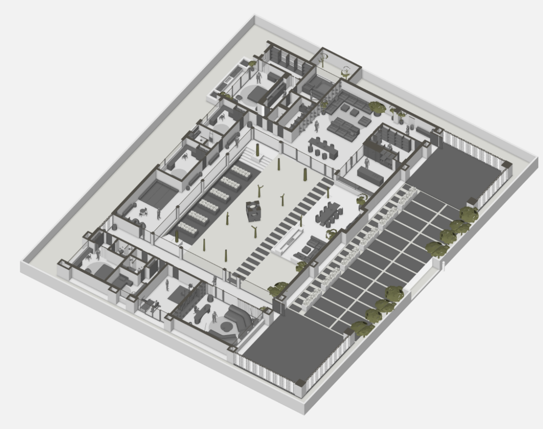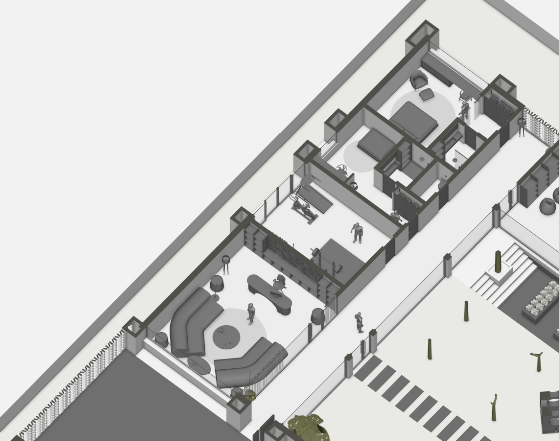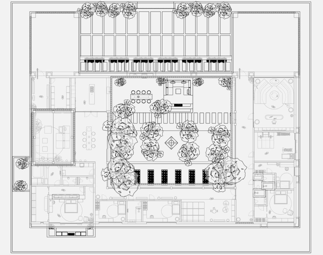 Эта частная вилла в ОАЭ спроектирована как уединённое убежище, органично встроенное в природный и климатический контекст региона. Архитектура сочетает лаконичную геометрию, тёплую брутальность материала и продуманные климатические решения. Основной акцент сделан на приватность, внутреннюю тишину и взаимодействие с зелёной средой. Вилла словно прячется за стенами и зеленью, открываясь только внутрь — в сторону просторного внутреннего двора, который становится центром жизни. Простые формы, тени от пергол, рассеянный свет и растительность создают ощущение камерного, но щедрого пространства, где архитектура работает не напоказ, а на качество повседневной жизни.