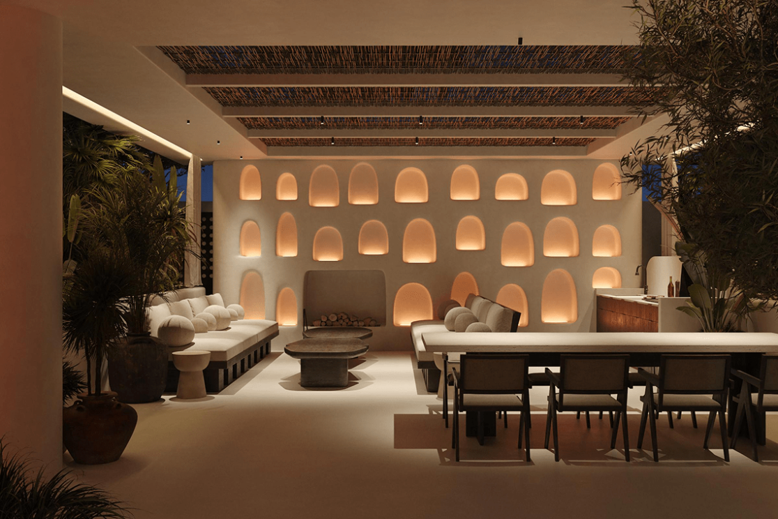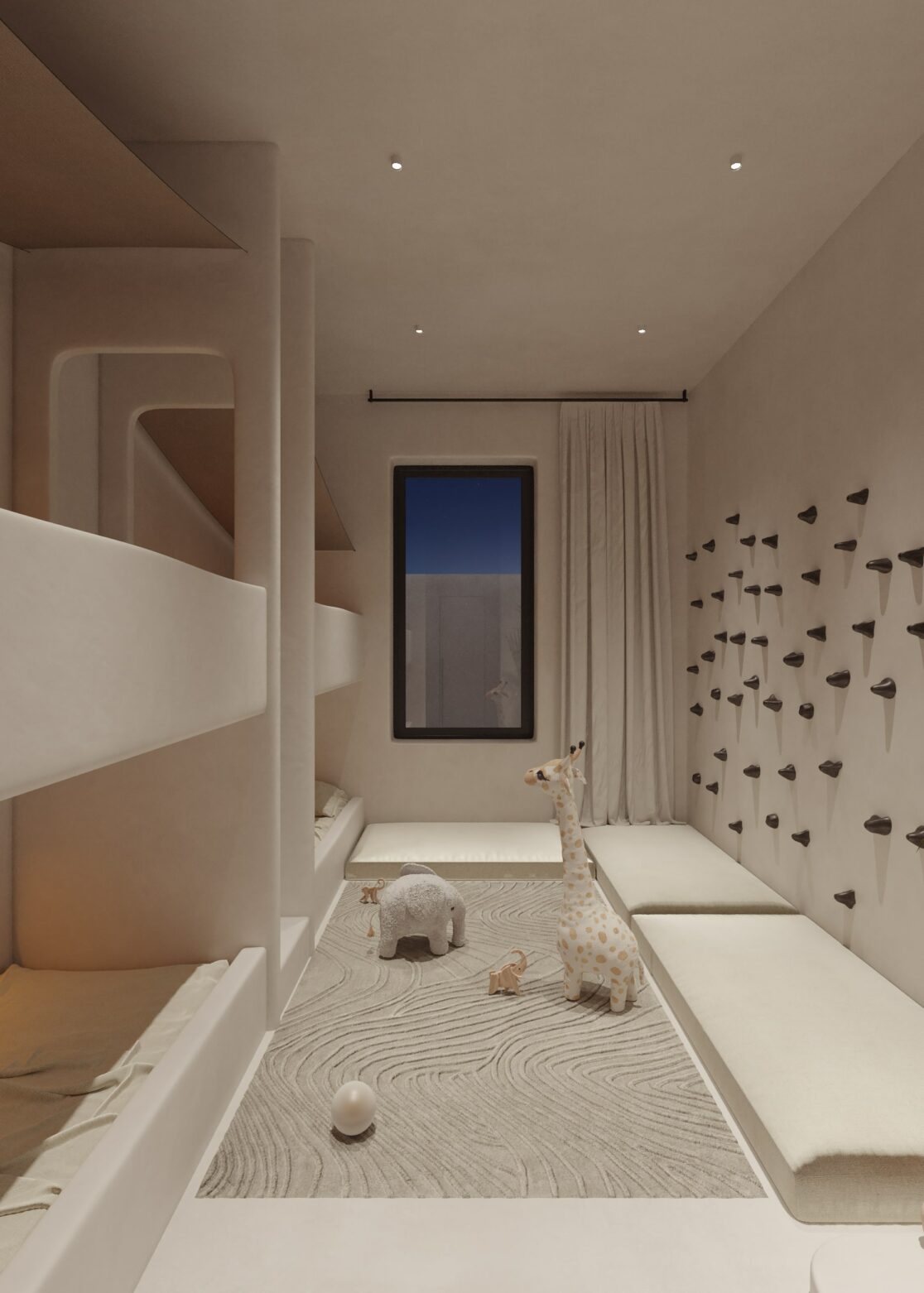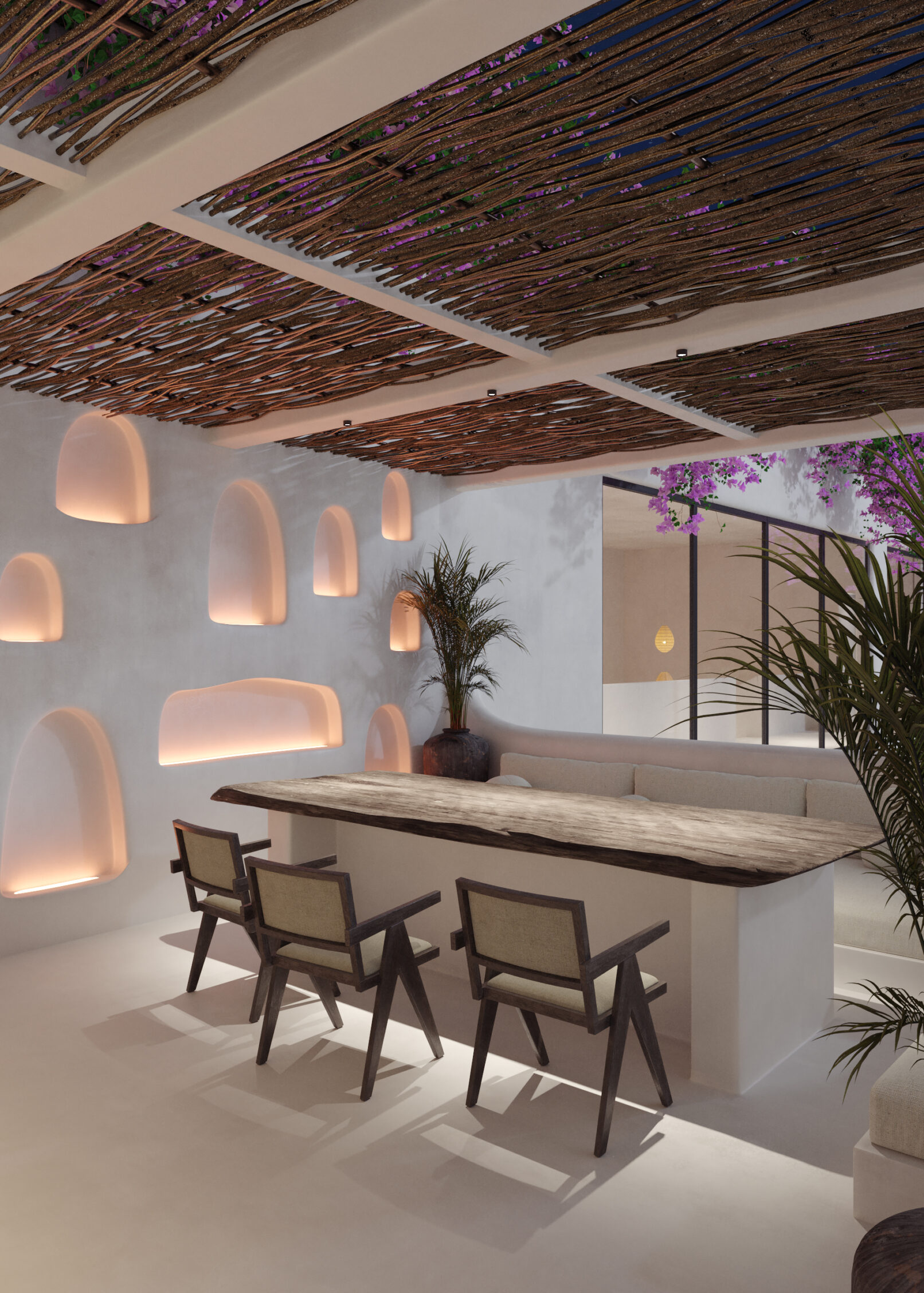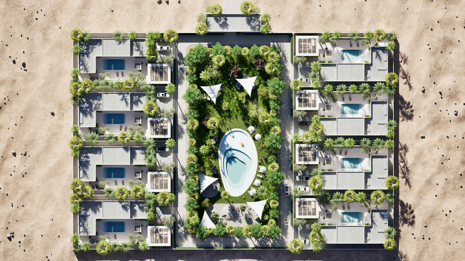 Жилой комплекс из восьми современных вилл спроектирован как приватное убежище в самом сердце пустынного ландшафта. За строгими стенами периметра раскрывается зелёный мир с тенистыми садами, плавательным бассейном и ощущением тишины. Каждая вилла имеет собственную зону отдыха с бассейном и уличной кухней под перголой, а центр посёлка отдан под общее пространство с тропическим садом. Это место создано для неспешной жизни, уединения и естественного ритма, в полной гармонии с природной средой.