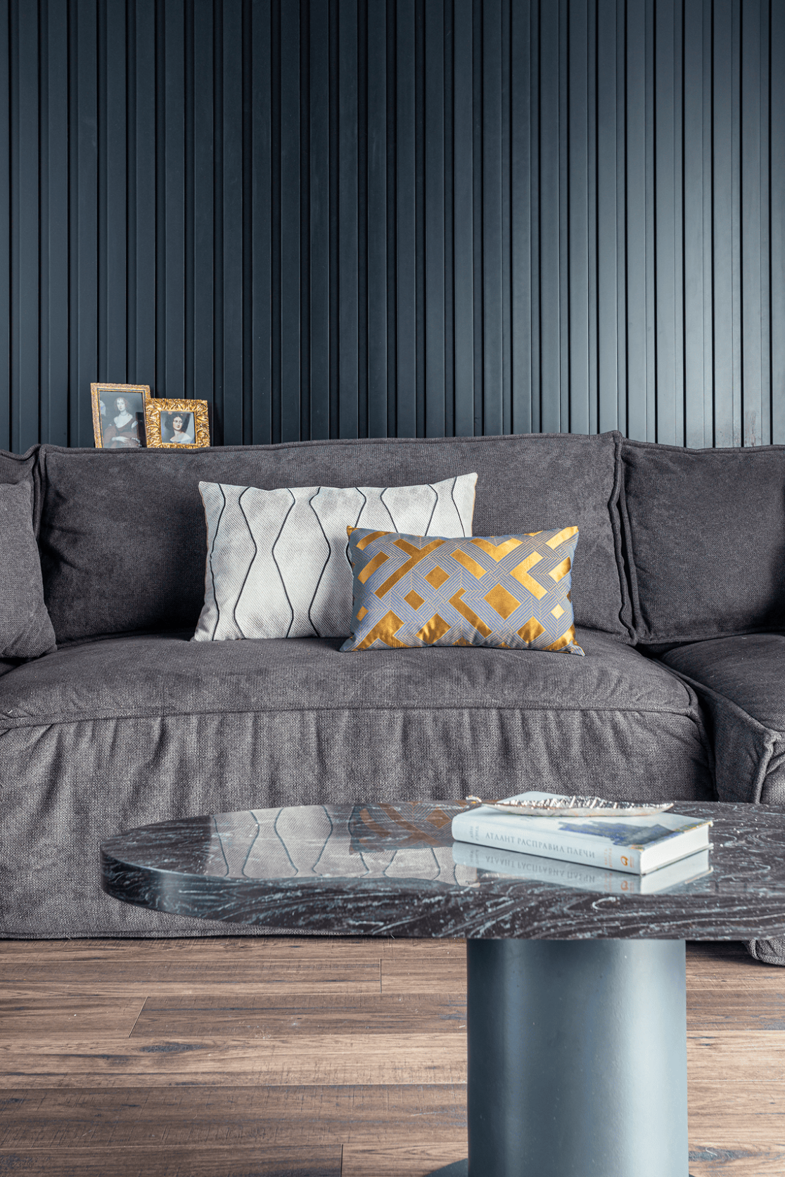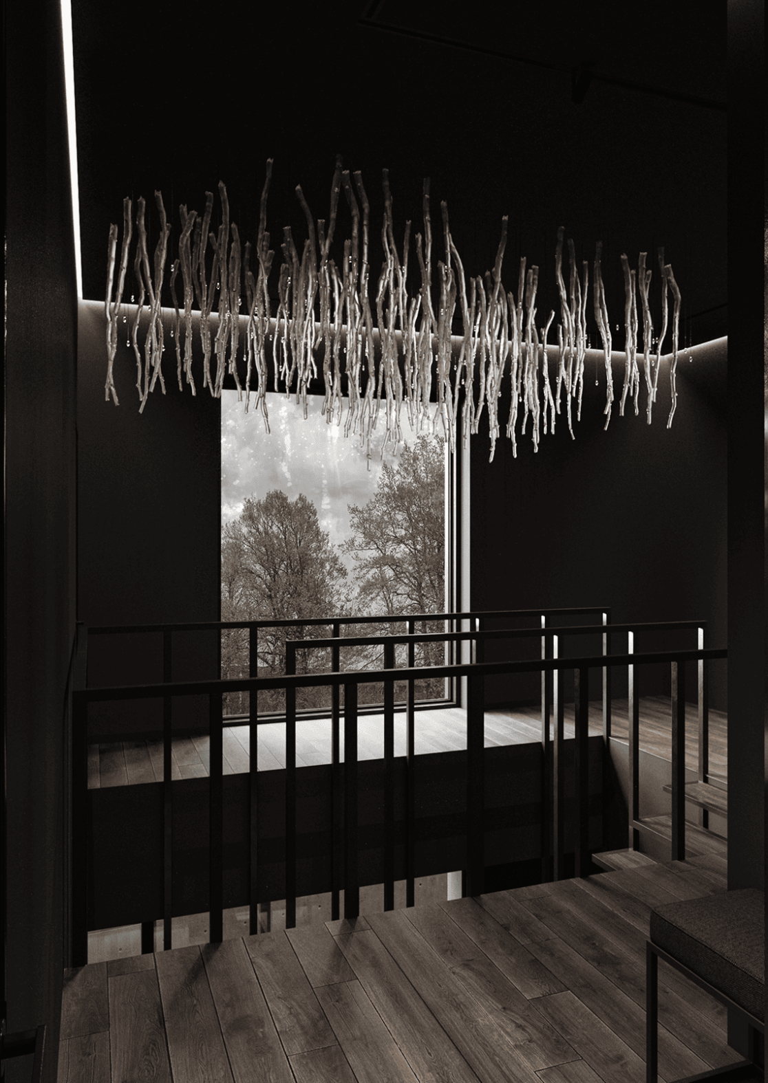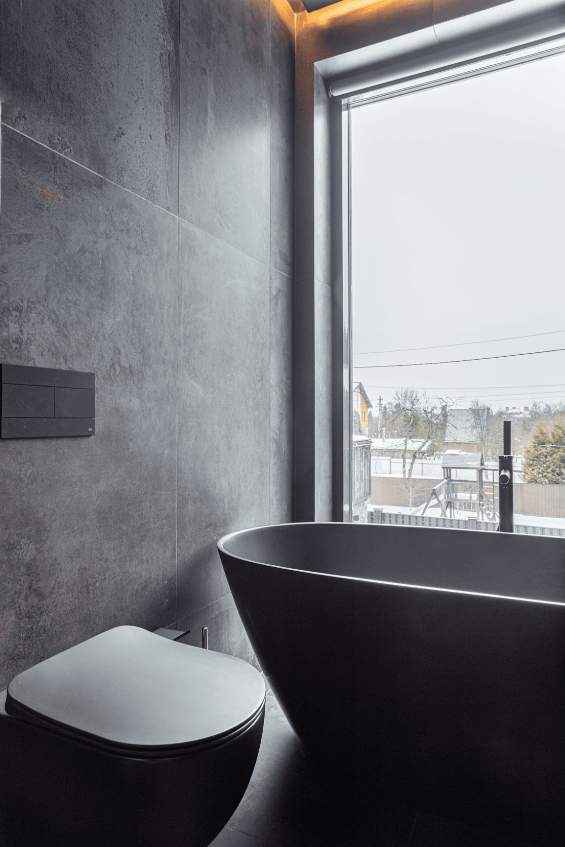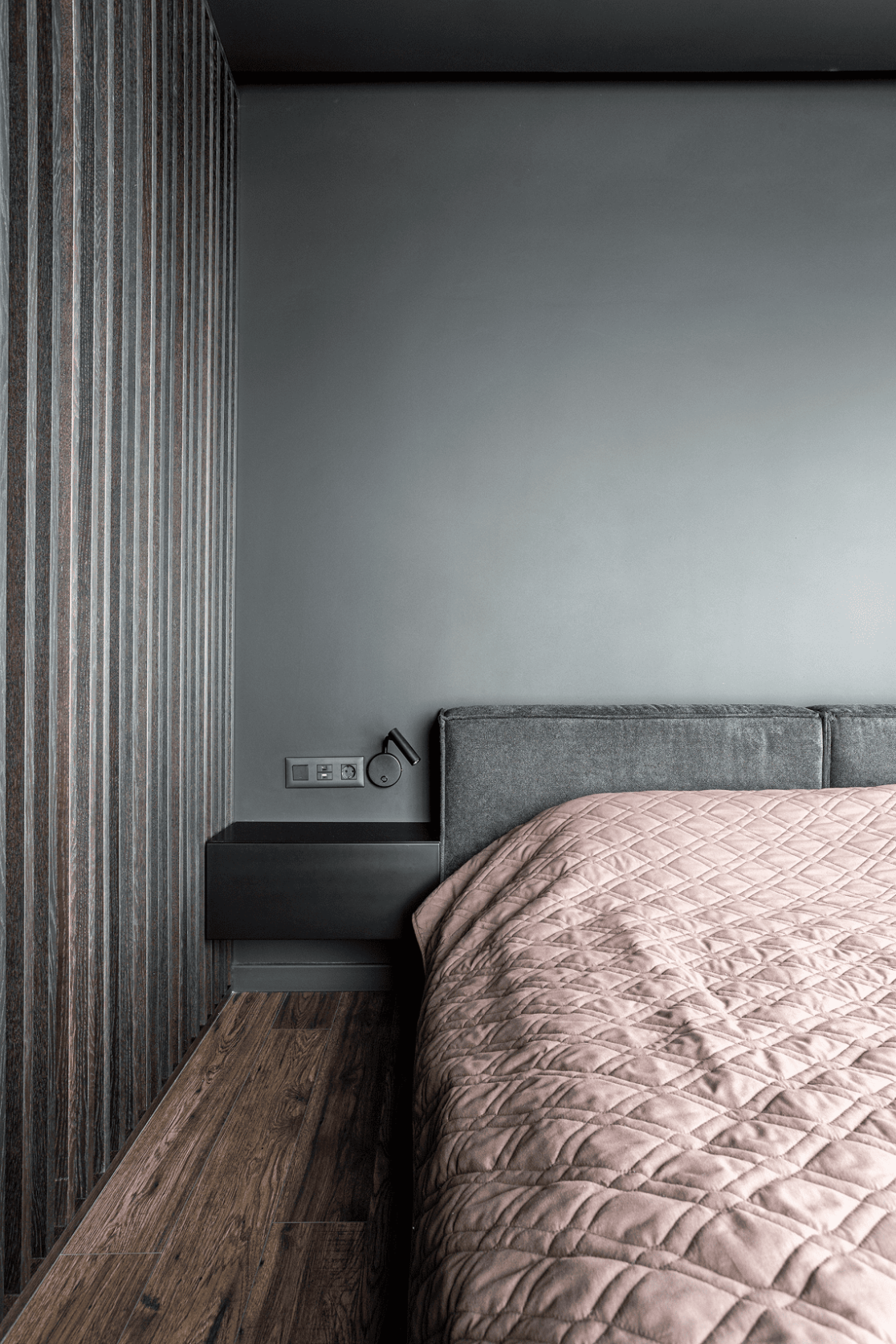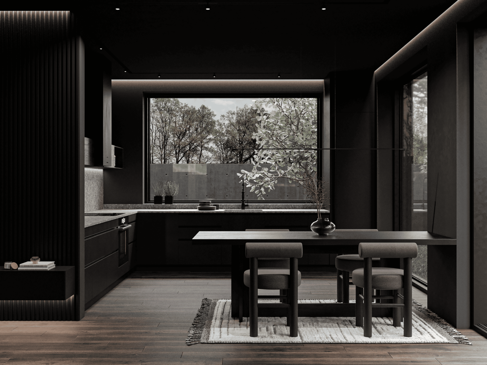 Жилой дом в посёлке Истра выполнен в современной лаконичной стилистике. Архитектура построена на сочетании двух выразительных материалов: камня тёмного оттенка в отделке первого этажа и вертикальной деревянной обшивки на втором. Контраст фактур подчёркивает горизонтальное деление объёмов и усиливает цельность архитектурного образа.